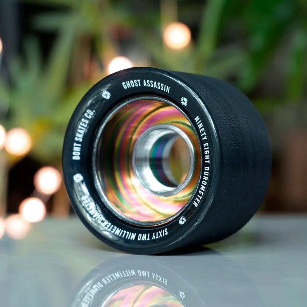 Experience unmatched performance with BONT Skates Ghost Assassin Wheels 98A. Crafted from our exclusive high-rebound urethane, these wheels launch you forward effortlessly while keeping precise control.