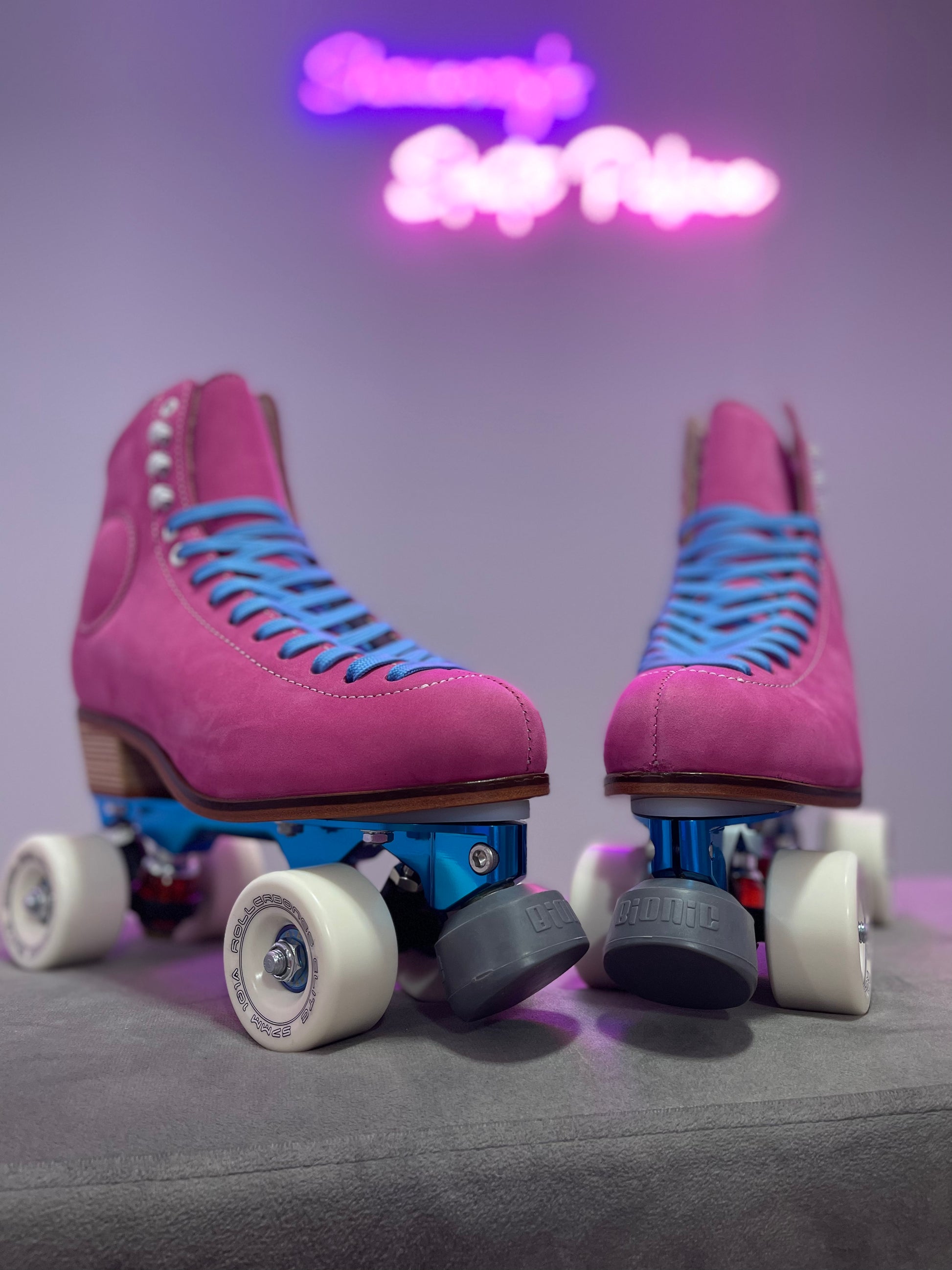 Your skate will come ready mounted on the Atom Falcon Plus plate (Electric Blue) with 8MM axles, blue beagle bearings, White Roller Bones Elite wheels, standard toe stop and blue laces.