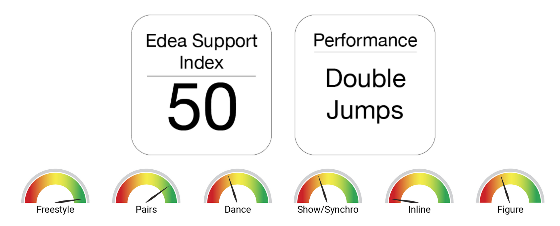 Training Level: Mid Level Dance and Single and Double Jumps (Even a good option for lower level Skaters, In EDEA you cannot “OverBoot” a Skater) Training Hours: 10 to 12 Hours per week Comfort Level: Very Comfortable Mid Level Skate, Feels like a Traditional Skate